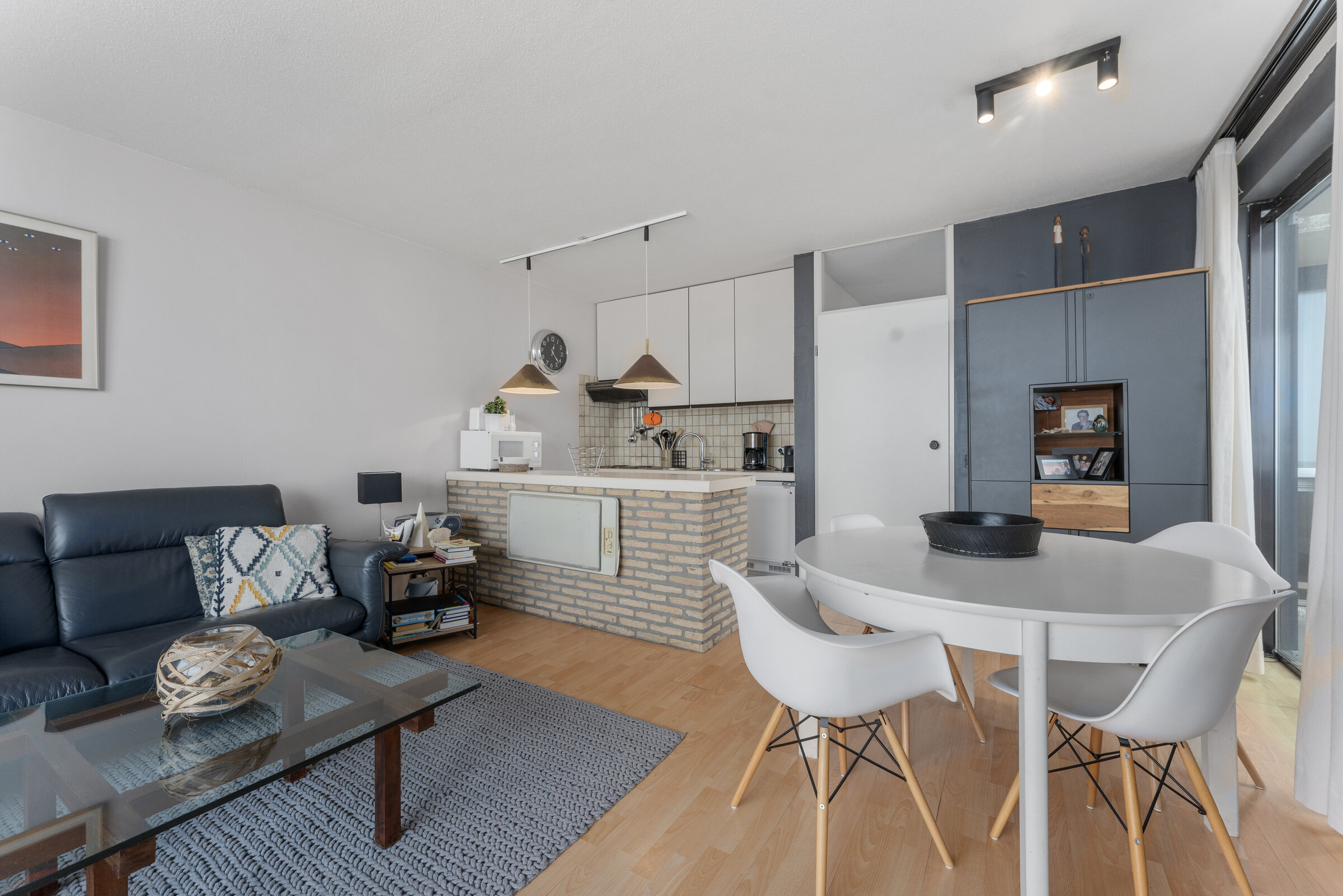 - Living room : Digitalised (sattelite) TV, Balcony, Parquet floor