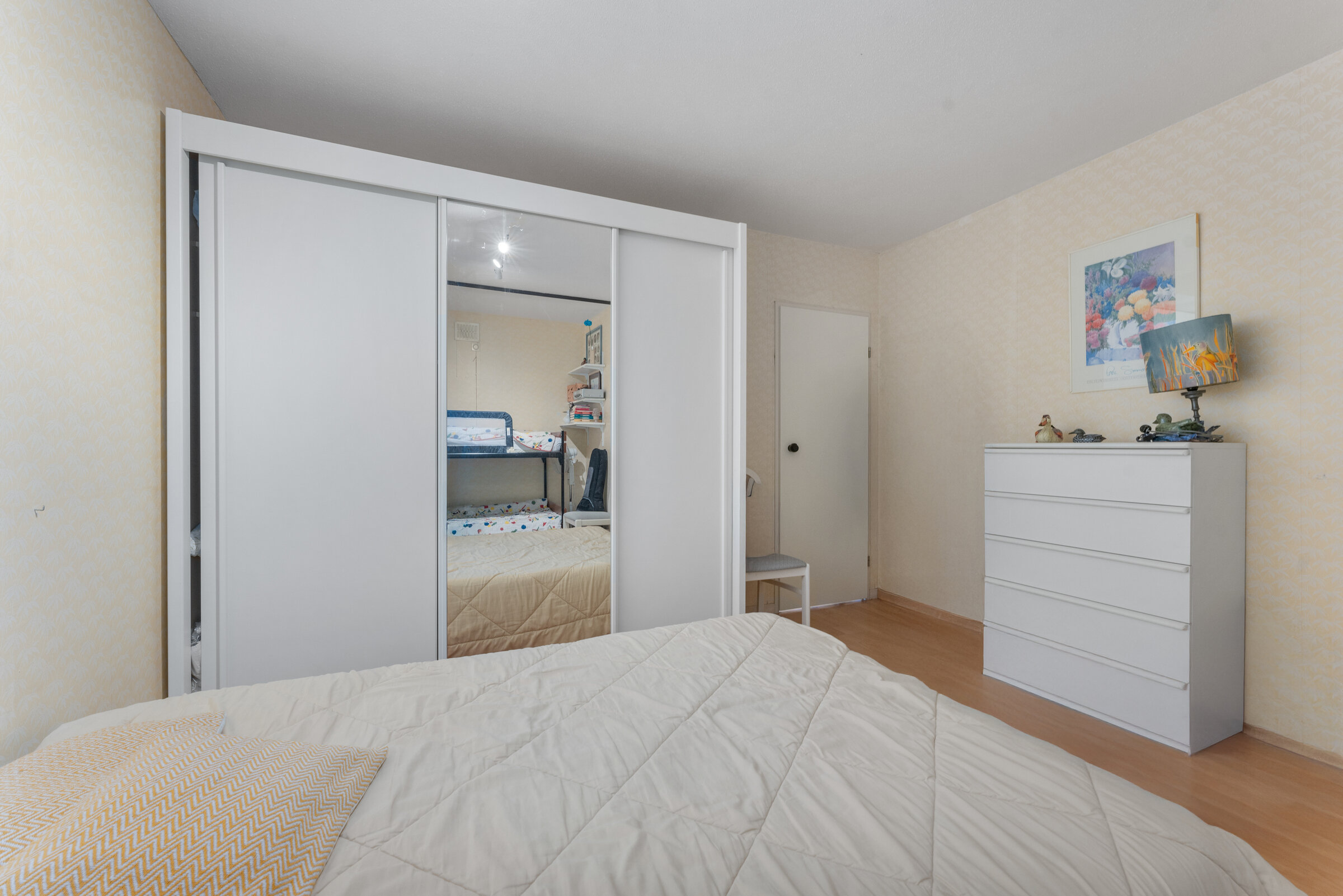 - Bedroom 1 : Wardrobe, Bunk bed two people, Double bed 160x200, Space for cot