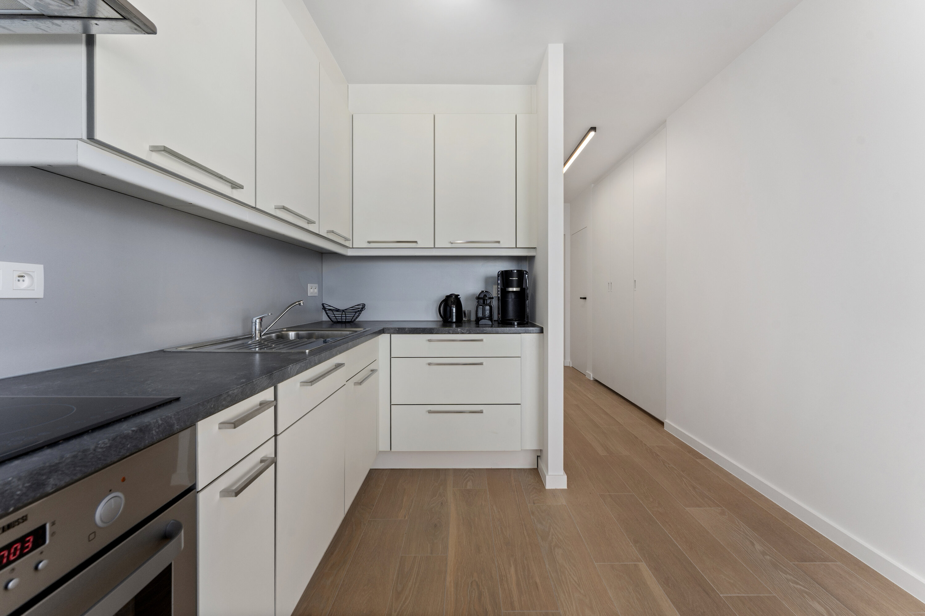 - Kitchen : Starter pack: toilet paper, dish soap, dishwasher tablets, and kitchen paper., Dishwasher, Fridge with freezer compartment, Broodrooster, Croque monsieur appliance, Coffee machine with filter, Oven, Mixer, Coffee machine Nespresso, Microwave oven, Cooking on induction, Waterkoker, Fruit press, Coffee machine with capsules